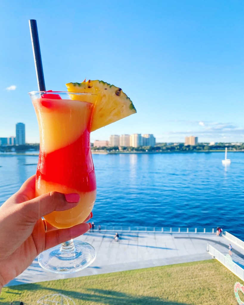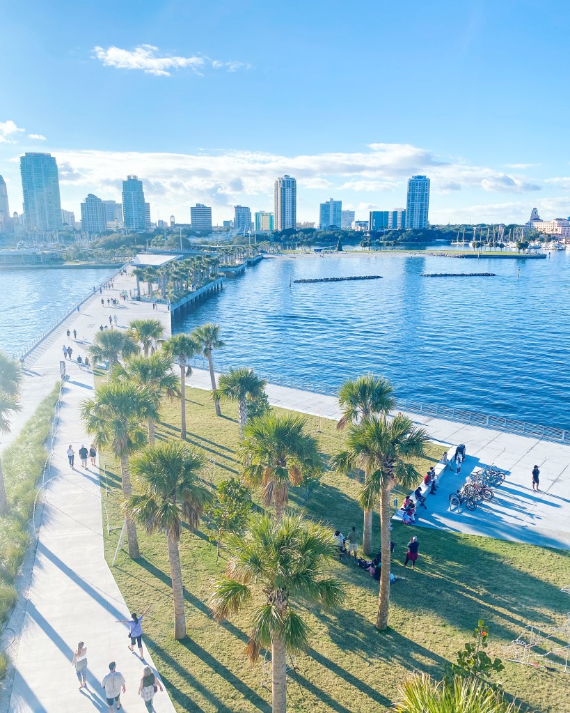 A place of peace, walking the St Pete Pier brings serenity and joy to all. And then at the end of the Pier is one of my favorite spots, Pier Teaki! Pier Teaki is at the top of this building at the edge of the Pier, and is another must visit in St Pete and all of Tampa Bay. It offers stunning views of The Bay and Downtown St Pete while offering delicious drinks and bar bites. We love to get the Pina Collada and the Motz Flatbread 🤤