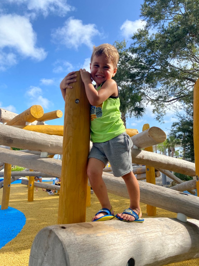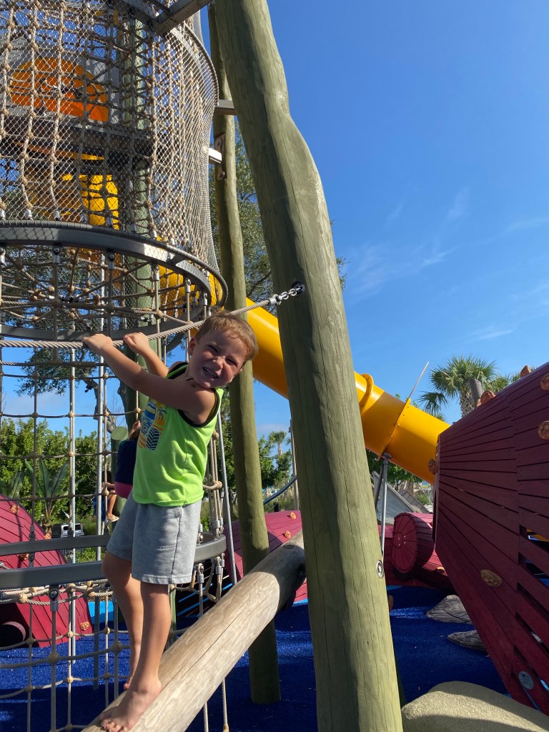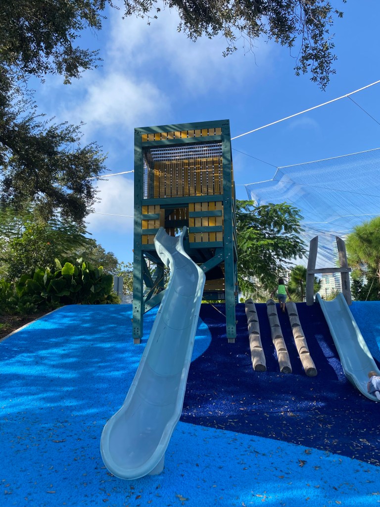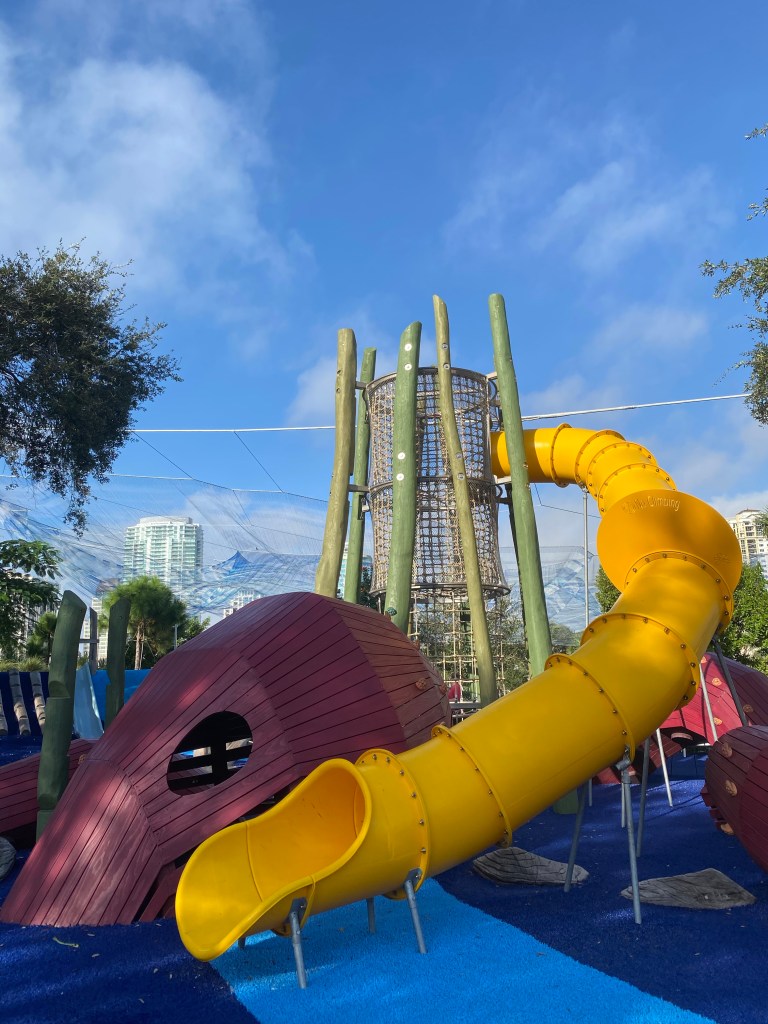 As you continue to walk the Pier, you’ll come to the Glazer Family playground! This is one of our favorite parks in St Pete and one we visit frequently with our friends There is an area for littles, and then there is an area for bigger kids. The playground equipment was designed SO PERFECTLY! It is totally on theme with the pier. Ships to climb, nets to crawl, it is truly completely amazing in every way. We spend hours playing here!